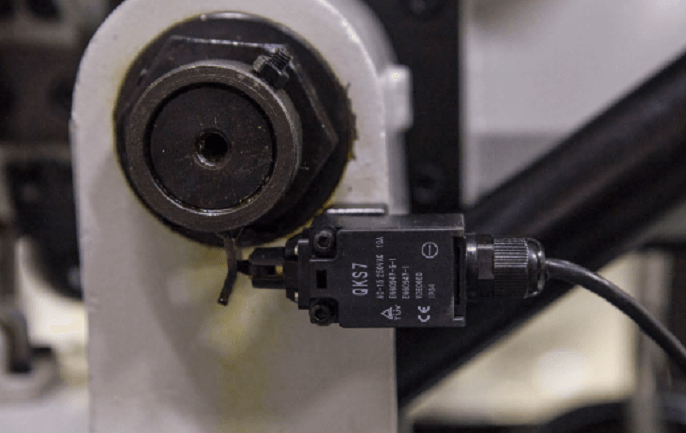Датчик регулировки и отключения станка при опускании пильной рамы в нижнее положение.