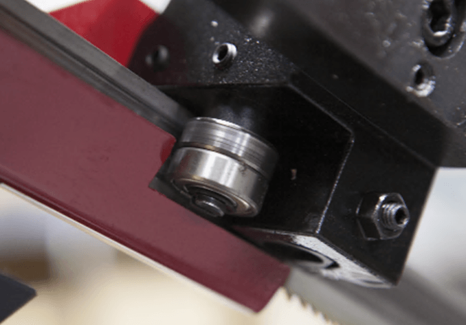 Подвижная направляющая, зубчатый блок, с твёрдосплавными платинами и подшипниками для выпрямления полотна в зоне резания.
