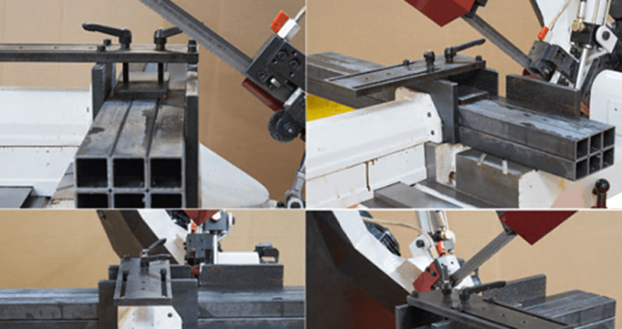 Используя данную модель имеющую тиски для резки под углом, поворачивается рама, а не заготовка. Зажим заготовки осуществляется тисками вручную, подача заготовки - также вручную. Наличие система СОЖ в стандартной комплектации – позволяет добиться высокой производительности.